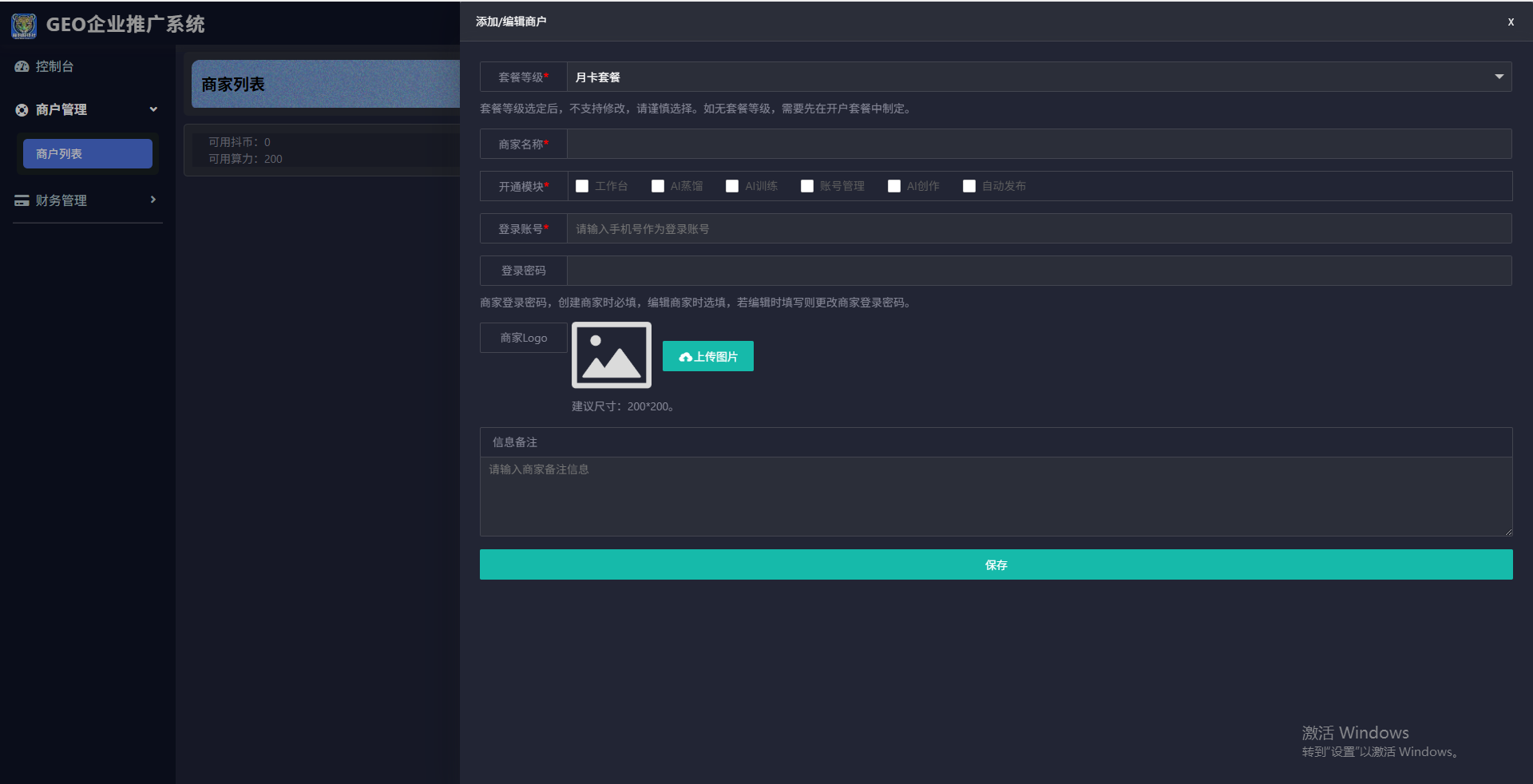 GEO企业推广系统-【升级合伙人无限开户+后台管理正版授权】
